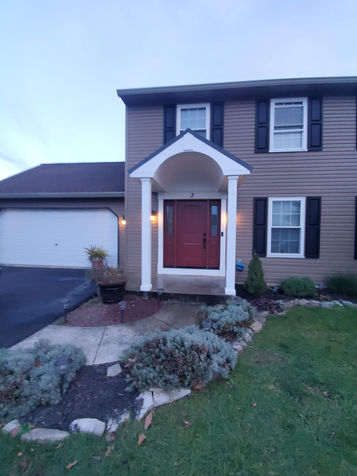 This was a roof we constructed, with a metal AB seam panel roof, PVC posts, and a barrel underside. This one definitely added some curb appeal!